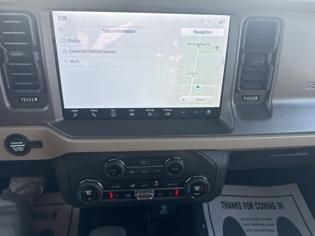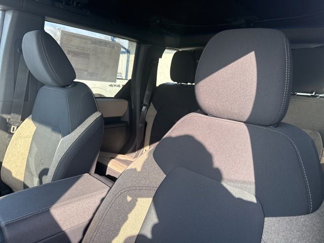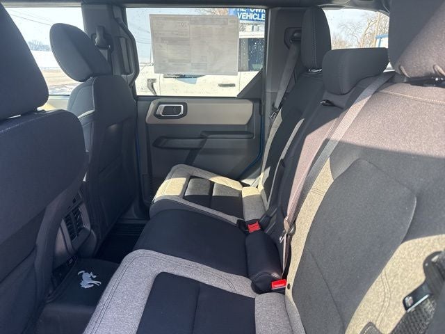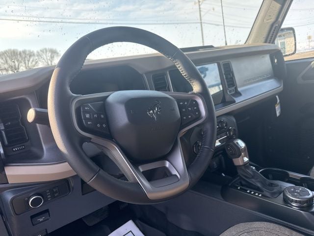 Velocity Blue Metallic 2025 Ford Bronco Big Bend 4WD 10-Speed Automatic 2.3L EcoBoost I-4 2-Door Intelligent Access w/Lock/Unlock, 4-Wheel Disc Brakes, 4.46 Axle Ratio, 7 Speakers, ABS brakes, Air Conditioning, Alloy wheels, AM/FM radio: SiriusXM with 360L, AM/FM Stereo, Ambient Footwell Lighting, Auto High-Beam Headlamps, Auto High-beam Headlights, BLIS Blind Spot Information System, Brake assist, Carbonized Gray Molded-In-Color Hard Top, Cloth Bucket Seats, Compass, Connected Navigation, Delay-off headlights, Door Storage Bags, Dr & Pass Illuminated Sliding Visor Vanity Mirrors, Driver door bin, Driver vanity mirror, Dual front impact airbags, Dual front side impact airbags, Dual Smart Charging USB Ports, Dual-Zone Electronic Automatic Temperature Control, Electronic Stability Control, Emergency communication system: 911 Assist, Equipment Group 222A Mid Package, Exterior Parking Camera Rear, Front & Rear Floor Liners w/o Carpet Floor Mats, Front anti-roll bar, Front Bucket Seats, Front Center Armrest, Front License Plate Bracket, Front reading lights, Front Row Heated Seats, Front wheel independent suspension, Fully automatic headlights, Hard Top Sound Deadening Headliner, Heated door mirrors, Illuminated entry, Integrated roll-over protection, Internet access capable: FordPass Connect, Lane-Keeping System, Leather Shift Knob, Low tire pressure warning, Occupant sensing airbag, Outside temperature display, Overhead airbag, Overhead console, Panic alarm, Passenger door bin, Passenger vanity mirror, Power door mirrors, Power Outlet - Back Side of Center Floor Console, Power steering, Power windows, Pre-Collision Assist w/Automatic Emergency Braking, Radio data system, Rear Parking Sensors, Rear-View Camera, Rear-Window Defroster & Washer, Remote keyless entry, Security system, Side Step, SiriusXM w/360L, Speed control, Split folding rear seat, Steering wheel mounted audio controls, SYNC 4, Tachometer, Telescoping steering wheel, Tilt steering wheel, Traction control, Trip computer, Variably intermittent wipers, Wheels: 17 Carbonized Gray-Painted Aluminum.