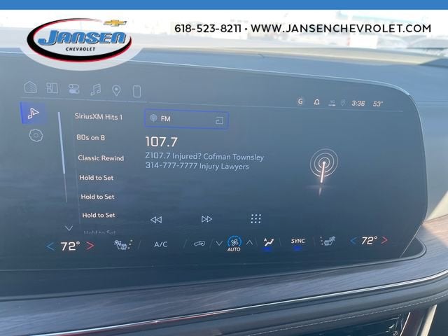 The Jansen Advantage: Complimentary Carfax on all vehicles, Complimentary Service Loaners, Complimentary Oil Change, Service Rewards Program, and Complimentary Local Pickup and Delivery. EcoTec3 5.3L V8 4WD Sterling Gray Metallic 1st and 2nd Rows All-Weather Floor Liners, 2-Speed Active Electronic AutoTrac Transfer Case, 2-Way Driver Power Lumbar Seat Adjuster, 2-Way Front Passenger Power Lumbar Seat Adjuster, 2nd Row Power Release 60/40 Split-Folding Bench Seat, 3.23 Rear Axle Ratio, 3rd Row 60/40 Power-Folding Split-Bench, 3rd Row All-Weather Floor Liners, 3rd row seats: split-bench, 4-Wheel Disc Brakes, 6 Speakers, 6-Speaker Audio System, 8-Way Power Driver Seat Adjuster, 8-Way Power Front Passenger Seat Adjuster, ABS brakes, Advanced Trailering Package, Air Conditioning, All-Weather Cargo Mat, All-Weather Liner Protection Package, Alloy wheels, AM/FM radio: SiriusXM with 360L, Apple CarPlay/Android Auto, Auto High-beam Headlights, Auto-Dimming Inside Rear-View Mirror, Automatic temperature control, Black Mirror Caps, Black Name Plates, Blind Zone Steering Assist with Trailering, Bose 10-Speaker Surround with CenterPoint, Brake assist, Bumpers: body-color, Comfort Package, Compass, Cruise Control, Dark Essentials Package, Delay-off headlights, Driver door bin, Driver vanity mirror, Dual front impact airbags, Dual front side impact airbags, Electronic Stability Control, Emergency communication system: OnStar Services capable, Exterior Parking Camera Rear, Four wheel independent suspension, Front and Rear Black Bowtie Emblems, Front anti-roll bar, Front Bucket Seats, Front Center Armrest, Front dual zone A/C, Front LED Fog Lamps, Front reading lights, Fully automatic headlights, Heated 2nd Row Outboard Seats, Heated door mirrors, Heated Driver and Front Passenger Seats, Heated front seats, Heated Power-Adjustable Outside Mirrors, Heated Steering Wheel, Hill Descent Control, Hitch View with Pan/Zoom Image Adjustment, Illuminated entry, Integrated Trailer Brake Controller, Interior Camera, Leather-Appointed Seating, LED Headlamps with LED Daytime Running Lamps, LED Tail Lamps, Low tire pressure warning, Luxury Package, Max Trailering Package, Memory seat, Memory Settings, Memory Settings For Driver, Navigation system: Google built-in compatibility (select service plan required, terms and limitations apply), Occupant sensing airbag, Outside temperature display, Overhead airbag, Overhead console, Panic alarm, Passenger door bin, Passenger vanity mirror, Power door mirrors, Power driver seat, Power Liftgate, Power passenger seat, Power Release 2nd Row Bucket Seats, Power steering, Power windows, Premium Smooth Ride Suspension, Radio data system, Radio: 17.7 Diagonal Advanced Color LCD Display, Rain sensing wipers, Rear air conditioning, Rear anti-roll bar, Rear Power Liftgate, Rear reading lights, Rear seat center armrest, Rear window defroster, Rear window wiper, Remote keyless entry, Security system, SiriusXM with 360L Trial Subscription, Smart Trailer Integration Indicator, Speed-sensing steering, Split folding rear seat, Spoiler, Steering wheel mounted audio controls, Tachometer, Telescoping steering wheel, Tilt steering wheel, Traction control, Trip computer, Universal Home Remote, Variably intermittent wipers, Voltmeter, Wheels: 18 x 8.5 Bright Silver Painted Aluminum, Wheels: 20 x 9 Machined Aluminum, Wireless Apple CarPlay/Wireless Android Auto, Wireless Phone Charging. 14/19 City/Highway MPG