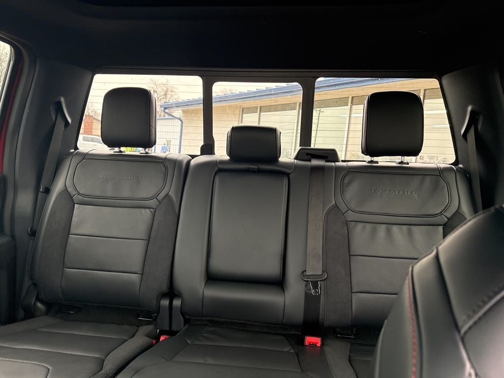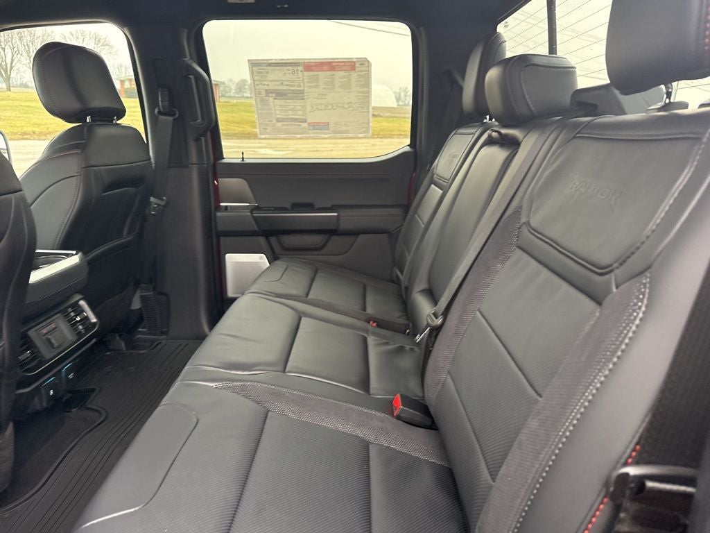 Ruby Red Metallic Tinted Clearcoat 2026 Ford F-150 Raptor 4WD 10-Speed Automatic 3.5L V6 EcoBoost High Output 14 Speakers, 17 Cast Aluminum Wheels, 4-Wheel Disc Brakes, ABS brakes, Adjustable pedals, Air Conditioning, Alloy wheels, AM/FM radio: SiriusXM with 360L, Auto High-beam Headlights, Auto tilt-away steering wheel, Auto-dimming door mirrors, Auto-dimming Rear-View mirror, Automatic temperature control, Brake assist, Bumpers: body-color, Compass, Delay-off headlights, Driver door bin, Driver vanity mirror, Driver's Side SecuriCode Keyless-Entry Keypad, Dual front impact airbags, Dual front side impact airbags, Electronic Locking with 4.10 Axle Ratio, Electronic Stability Control, Emergency communication system: SYNC 4 911 Assist, Equipment Group 801A Standard, Ford Connectivity Package (1-Year Included), Front anti-roll bar, Front Bucket Seats, Front Center Armrest, Front dual zone A/C, Front fog lights, Front License Plate Bracket, Front reading lights, Front wheel independent suspension, Fully automatic headlights, Garage door transmitter, Heated door mirrors, Heated front seats, Heated rear seats, Heated steering wheel, Illuminated entry, Internet access capable: 5G Modem - Ford Connectivity Package, Lane Departure Warning System, Leather steering wheel, Leather Trimmed Seats, Low tire pressure warning, Memory seat, Navigation system: Connected Navigation, Occupant sensing airbag, Outside temperature display, Overhead airbag, Overhead console, Panic alarm, Passenger door bin, Passenger vanity mirror, Pedal memory, Power door mirrors, Power driver seat, Power passenger seat, Power steering, Power windows, Radio data system, Radio: B&O Unleashed Sound System by Bang & Olufsen, Rain sensing wipers, Rear reading lights, Rear step bumper, Rear window defroster, Remote keyless entry, Security system, Speed control, Speed-sensing steering, Split folding rear seat, Steering wheel memory, Steering wheel mounted audio controls, SYNC 4 with Enhanced Voice Recognition, Tachometer, Telescoping steering wheel, Tilt steering wheel, Tough Bed Spray-in Bedliner, Traction control, Trip computer, Turn signal indicator mirrors, Twin Panel Moonroof, Variably intermittent wipers, Ventilated front seats.