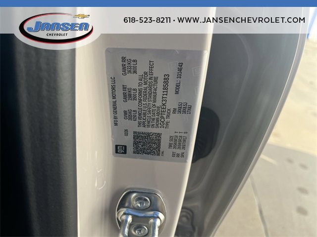 The Jansen Advantage: Complimentary Carfax on all vehicles, Complimentary Service Loaners, Complimentary Oil Change, Service Rewards Program, and Complimentary Local Pickup and Delivery. 2.7L I4 Turbocharged DOHC 16V LEV3-ULEV50 310hp 4WD White Sands 3.42 Rear Axle Ratio, 4-Spoke Wrapped Steering Wheel, 4-Way Manual Passenger Seat Adjuster, 4-Wheel Disc Brakes, 6 Speakers, 6-Speaker Audio System Feature, 6-Way Manual Driver Seat Adjuster, 8-Way Power Driver Seat Adjuster, ABS brakes, Air Conditioning, Alloy wheels, AM/FM radio: SiriusXM with 360L, Apple CarPlay/Android Auto, Auto High-beam Headlights, Automatic Emergency Braking, Automatic temperature control, Black Spray-on Bedliner with Chevrolet Logo, Brake assist, Chevy Safety Assist, Cloth Seat Trim, Compass, Cruise Control, Delay-off headlights, Driver and Front Passenger Heated Seats, Driver door bin, Driver vanity mirror, Dual front impact airbags, Dual front side impact airbags, Electronic Stability Control, Emergency communication system: OnStar, Evotex Seat Trim, Following Distance Indicator, Forward Collision Alert, Front anti-roll bar, Front Bucket Seats, Front Center Armrest, Front dual zone A/C, Front License Plate Kit, Front Pedestrian and Bicyclist Braking, Front wheel independent suspension, Heated door mirrors, Heated Steering Wheel, Illuminated entry, IntelliBeam Automatic High Beam on/Off, Lane Keep Assist with Lane Departure Warning, Low tire pressure warning, Navigation System, Occupant sensing airbag, Outside temperature display, Overhead airbag, Overhead console, Panic alarm, Passenger door bin, Passenger vanity mirror, Power door mirrors, Power Driver Lumbar Control Seat Adjuster, Power steering, Power windows, Preferred Equipment Group 0TR, Radio data system, Radio: 11.3 Diagonal Advanced Color LCD Display, Rear reading lights, Rear step bumper, Rear window defroster, Remote keyless entry, Remote Vehicle Starter System, Security system, SiriusXM with 360L Trial Subscription, Speed-sensing steering, Split folding rear seat, Steering Wheel Mounted Audio Controls, Steering wheel mounted audio controls, Tachometer, Tilt steering wheel, Traction control, Trail Boss Convenience Package II, Trip computer, Variably intermittent wipers, Wheels: 18 x 8.5 Black High Gloss Aluminum, Wireless Phone Charging, Wireless Phone Projection. 18/23 City/Highway MPG