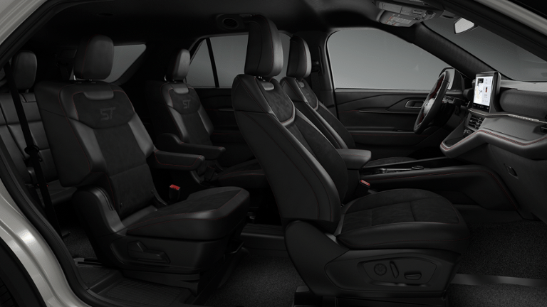 Star White Metallic Tri-Coat 2026 Ford Explorer ST 4WD 10-Speed Automatic 3.0L EcoBoost V6 10 Speakers, 3rd row seats: bench, 4-Wheel Disc Brakes, ABS brakes, Air Conditioning, Alloy wheels, AM/FM radio: SiriusXM with 360L, Apple CarPlay/Android Auto, Auto High-beam Headlights, Auto-dimming door mirrors, Auto-dimming Rear-View mirror, Automatic temperature control, BlueCruise Equipped (1-Year + 90-Day Plan), Brake assist, Bumpers: body-color, Compass, Delay-off headlights, Driver door bin, Driver vanity mirror, Dual front impact airbags, Dual front side impact airbags, Electronic Stability Control, Emergency communication system: 911 Assist, Equipment Group 400A Standard Package, Exterior Parking Camera Rear, Ford Connectivity Package (one-Time Purchase - 7 Years), Four wheel independent suspension, Front and 2nd Rows Floor Liners with Carper Floor Mats, Front anti-roll bar, Front Bucket Seats, Front Center Armrest, Front dual zone A/C, Front fog lights, Front License Plate Bracket, Front reading lights, Fully automatic headlights, Garage door transmitter, Heated door mirrors, Heated front seats, Heated rear seats, Heated steering wheel, Heated/Ventilated Miko Suede Captain's Chairs, Illuminated entry, Knee airbag, Leather steering wheel, Low tire pressure warning, Memory seat, Navigation System, Occupant sensing airbag, Outside temperature display, Overhead airbag, Overhead console, Panic alarm, Passenger door bin, Passenger vanity mirror, Power door mirrors, Power driver seat, Power Liftgate, Power passenger seat, Power steering, Power windows, Radio: B&O Sound System by Bang and Olufsen, Rain sensing wipers, Rear air conditioning, Rear anti-roll bar, Rear reading lights, Rear window defroster, Rear window wiper, Remote keyless entry, SecuriCode Keyless Entry Keypad, Security system, Speed control, Speed-sensing steering, Speed-Sensitive Wipers, Split folding rear seat, Spoiler, Sport steering wheel, Steering wheel mounted audio controls, Tachometer, Telescoping steering wheel, Tilt steering wheel, Traction control, Trip computer, Turn signal indicator mirrors, Variably intermittent wipers, Ventilated front seats, Wheels: 21 Magnetite-Painted Aluminum.