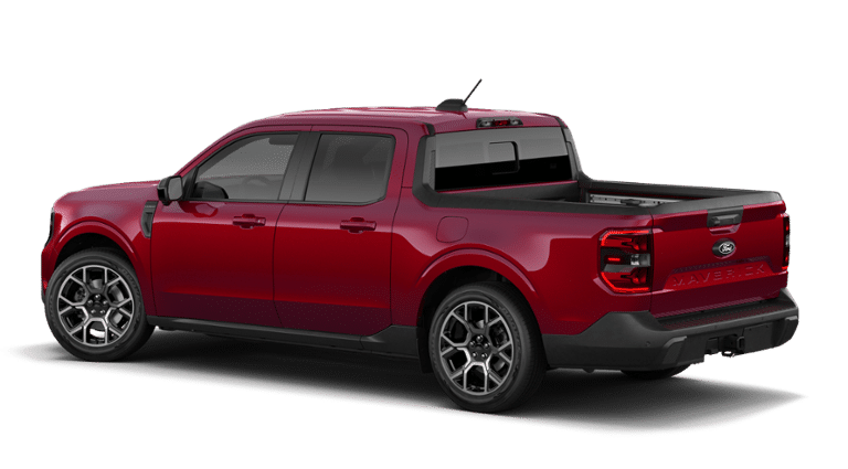 Ruby Red Metallic Tinted Clearcoat 2026 Ford Maverick Lariat AWD CVT 2.5L I-4 Hybrid 2.91 Axle Ratio, 4-Wheel Disc Brakes, 4K Tow Package, 8 Speakers, ABS brakes, ActiveX Trimmed Heated Front Bucket Seats, Air Conditioning, Alloy wheels, AM/FM radio: SiriusXM with 360L, Apple CarPlay/Android Auto, Auto High-beam Headlights, Automatic temperature control, Brake assist, Bumpers: body-color, Compass, Delay-off headlights, Driver door bin, Driver vanity mirror, Dual front impact airbags, Dual front side impact airbags, Electronic Stability Control, Emergency communication system: SYNC 4 911 Assist, Exterior Parking Camera Rear, Ford Connectivity Package (1-Year Included), Ford Connectivity Package (one-Time Purchase - 7 Years), Four wheel independent suspension, Front and Rear Floor Liners Without Carpet Mats, Front anti-roll bar, Front Bucket Seats, Front Center Armrest, Front dual zone A/C, Front reading lights, Fully automatic headlights, Heated door mirrors, Heated front seats, Heated steering wheel, Illuminated entry, Internet access capable: 5G Modem - Ford Connectivity Package, Knee airbag, Low tire pressure warning, Navigation system: Connected Navigation, Occupant sensing airbag, Outside temperature display, Overhead airbag, Overhead console, Panic alarm, Passenger door bin, Passenger vanity mirror, Power door mirrors, Power driver seat, Power steering, Power windows, Power-Sliding Rear Window, Radio data system, Radio: B&O Sound System by Bang and Olufsen, Rear anti-roll bar, Rear seat center armrest, Rear step bumper, Remote keyless entry, Security system, SiriusXM with 360L, Speed control, Speed-sensing steering, Steering wheel mounted audio controls, SYNC 4 with Enhanced Voice Recognition, Telescoping steering wheel, Tilt steering wheel, Traction control, Trailer Brake Controller, Trailer Hitch (class III) 2 Receiver, Trip computer, Upgraded Cooling Fan, Wheels: 19 Machined Aluminum Painted.