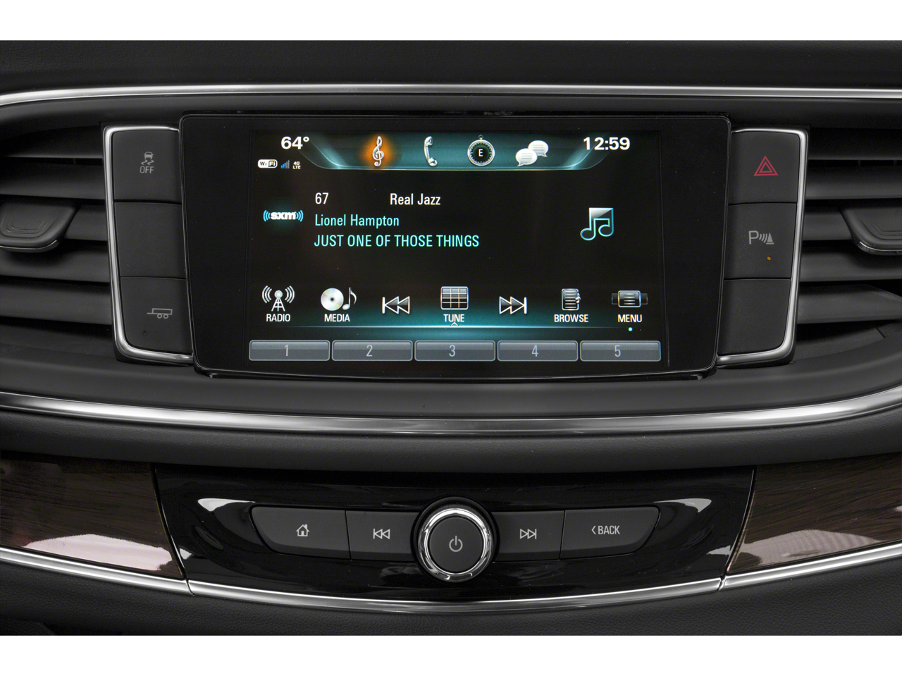 - Audio system, Buick Infotainment System, AM/FM stereo, SiriusXM, with 8" diagonal Color Touch Screen includes 2 USB ports inside center console, Bluetooth streaming for audio and select phones and Phone Integration for Apple CarPlay and Android Auto capability for compatible phone