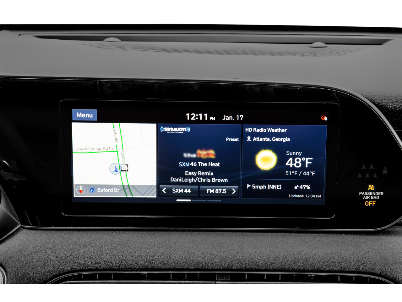 • Radio: AM/FM/MP3 Premium Audio System -inc: 630-Watts, 12-speaker harman/kardon premium audio system, QuantumLogic surround sound, Clari-Fi music restoration technology, 10.25" color touchscreen, on-board navigation, traffic flow including incident data via HD Radio (HERE), SiriusXM, HD Radio, Apple CarPlay & Android Auto, Blue Link Connected Car, driver talk (in-car intercom), quiet mode, multiple device connection (up to 2 devices), USB/Auxiliary input jacks, rearview monitor w/parking guidelines, Bluetooth hands-free w/wireless audio streaming and wireless device charging (for Qi-supported devices)