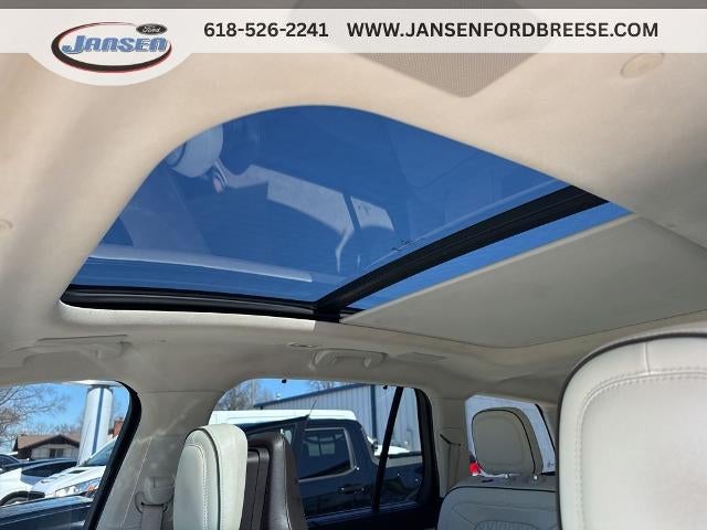 14 Speakers, 3.58 Axle Ratio, 3rd row seats: split-bench, 4-Wheel Disc Brakes, ABS brakes, Adaptive suspension, Air Conditioning, Alloy wheels, AM/FM radio: SiriusXM, Audio memory, Auto High-beam Headlights, Auto-dimming door mirrors, Auto-dimming Rear-View mirror, Automatic temperature control, Brake assist, Bumpers: body-color, Compass, Delay-off headlights, Driver door bin, Driver vanity mirror, Dual front impact airbags, Dual front side impact airbags, Electronic Stability Control, Emergency communication system, Four wheel independent suspension, Front anti-roll bar, Front Bucket Seats, Front Center Armrest, Front dual zone A/C, Front reading lights, Fully automatic headlights, Garage door transmitter, Heated door mirrors, Heated front seats, HVAC memory, Illuminated entry, Knee airbag, Leather steering wheel, Low tire pressure warning, Memory seat, Navigation System, Occupant sensing airbag, Outside temperature display, Overhead airbag, Overhead console, Panic alarm, Passenger door bin, Passenger vanity mirror, Power door mirrors, Power driver seat, Power Liftgate, Power moonroof: Panoramic Vista Roof, Power passenger seat, Power steering, Power windows, Premium Lthr Heated/Ventilated Fnt Captain's Chairs, Radio data system, Radio: Revel AM/FM Audio System w/14 Speakers, Rain sensing wipers, Rear air conditioning, Rear anti-roll bar, Rear audio controls, Rear dual zone A/C, Rear reading lights, Rear window defroster, Rear window wiper, Remote keyless entry, Security system, SiriusXM Radio, Speed control, Speed-Sensitive Wipers, Split folding rear seat, Spoiler, Steering wheel memory, Steering wheel mounted A/C controls, Steering wheel mounted audio controls, SYNC 3 Communication & Entertainment System, Tachometer, Telescoping steering wheel, Tilt steering wheel, Traction control, Trip computer, Turn signal indicator mirrors, Variably intermittent wipers, Wheels: 20 Bright-Machined Aluminum.
